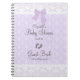 A beautiful addition to your elegant Baby Shower-this is only an image! Not real lace or bow. This " Lavender Damask and Lace Baby Shower Guest Book" will be a cherished keepsake for years to come for the mum-to-be. Let your guests write something special to the mummy! Lavender purple and white damask, with white lace, a pretty lavender purple bow and baby footprints. The mother-to-be name and shower date are personalised on this beautiful, baby shower gift log or baby shower guestbook. Add matching products. Please visit my store "The Hungarican Princess" at www.zazzle.com/hungaricanprincess*. Look in my "Oh Baby" department category.