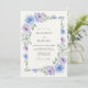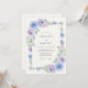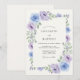 This design features a delicate arrangement of lavender and periwinkle watercolor roses. Soft sage green leaves and delicate foliage accent the blooming floral elements. The ethereal watercolor style creates a romantic and dreamy atmosphere for a seasonal event. These botanical details offer a timeless aesthetic for a sophisticated gathering.