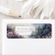 Add a touch of storybook magic to your correspondence with this breathtaking fairytale landscape. The design features a lush foreground of vibrant purple peony and delicate white botanical clusters, leading the eye toward a majestic blue-roofed stone castle nestled in a misty mountain forest by a tranquil lake. A unique, shimmering gold astrological detail graces the top corner, while a sophisticated triple-line gold frame provides a clear, high-contrast window for your information against the atmospheric, soft-focus sky. This is a return address label. It is the premier choice for an enchanted forest wedding, a whimsical fairytale ceremony, or a sophisticated storybook gala held in a historic manor or woodland resort. These labels provide a polished, artistic finish to your fantasy-themed stationery, thank-you notes, or luxury holiday mailings, ensuring your envelopes stand out with a sense of poetic wonder and refined romance from the moment they are received.