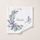 White background, decorated with a lavender and eucalyptus wreath. Personalise and add your name, black hand lettered style script.