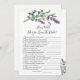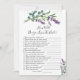 How Well Do You Know the Bride Bridal Shower Game. This design features a watercolor illustration of purple lavender flowers and eucalyptus foliage. On the top of the card - greenish effect confetti.
