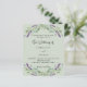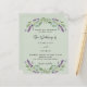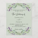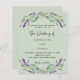 A sage green background decorated with lavender flowers and eucalyptus greenery. Personalise and your names and details.