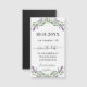 A magnetic Save the Date card for a wedding. A white background, decorated lavender florals and eucalyptus greenery. Personalise and add a date and your names. The text: Save the Date is written with a large trendy hand lettered style script.