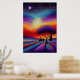 Aesthetic oil painting poster of a romantic lavender field in the Provence in France by night. Colourful landscape wall art for your Living Room.