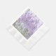 Coined lunch napkins with soft lavender and green inspired by the beauty of countryside lavender flowers with custom names for your wedding celebration.