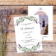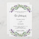 A white background decorated with lavender flowers and eucalyptus greenery. Personalise and your names and details.