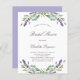 A white background decorated with lavender flowers and eucalyptus greenery. Personalise and a name and details.