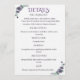 This elegant wedding details card features delicate purple watercolor roses and classic serif typography. It is designed to provide your guests with all the necessary information for your big day in a clear, organized format