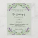 A sage green background decorated with lavender flowers and eucalyptus greenery. Personalise and your names and details.