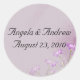 Stickers with pink and lavender flowers on distressed texture-look lavender background. Matching wedding stationery and gifts available in my store. Customise for bridal attendant gifts or any occasion.