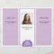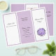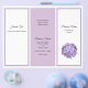 Tri-fold brochure template in lavender and white with purple hydrangea flowers. Fold into third and add a photo of yourself to the middle inside section. Alternating white and lavender panels on both sides of affordable flyer paper lets you customize each area with information about your business.