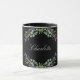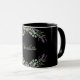 Personalise and add your name. Black background, white text. Decorted with lavender flowers and eucalyptus greenery.