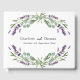 A stylish white background decorated with lavender florals and eucalyptus greenery. Personalise and add your names and wedding date.