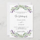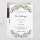 A white background decorated with lavender flowers and eucalyptus greenery. Personalise and your names and details.