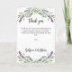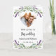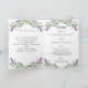 Welcome text, photo, program, menu and a thank you note on the back. Decorated with lavender flowers and eucalyptus greenery.