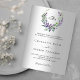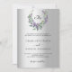A faux silver looking background. A floral wreath made of lavender flowers and watercolored eucalyptus greenery. Personalise and add your monogram initials, names, and details. Black text.