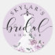 Lavender Florals White Wedding Dress Bridal Shower Classic Round Sticker