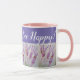 Lavender Flower Don't Worry Bee Happy Purple Mug, with a fully customizable name. Designed from my original garden watercolour painting.