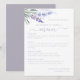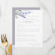 Elegant and rustic watercolor purple and blue lavender with classic and script typography wedding menu.