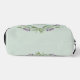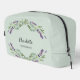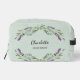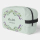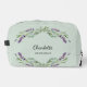 Sage green background. Decorated with lavender flowers and eucalyptus greenery.