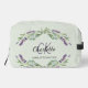 Sage green background, black and purple text. Decorated with lavender flowers and eucalyptus greenery.