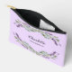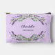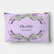 A violet background. Decorated with lavender flowers and eucalyptus greenery.