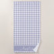 This personalised beach towel features lavender and white squares in a gingham checked pattern with a template area at the bottom to personalise with your name or other text.