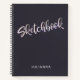 This stylish sketchbook features modern calligraphy in lavender and gold glitter on a midnight blue background. Personalise it with your name. Great gift idea.