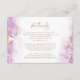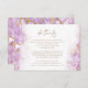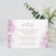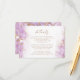 This elegant wedding details card features a lavender watercolor border design in imitation of marble veined with faux gold foil, fading gradually into the white background. The word "details" appears in gold-coloured handwriting script, with the remaining text in gold-coloured serif capitals. The lavender and gold marble pattern is repeated on the back of the card.
