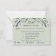 A sage green background, black text. Decorated with lavender florals and eucalyptus greenery. Personalise and add the reply by date and menu selections.