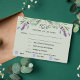 A sage green background, black text. Decorated with lavender florals and eucalyptus greenery. Personalise and add the reply by date and menu selections.