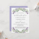A white background decorated with lavender flowers and eucalyptus greenery. Personalise and your names and details.
