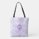 Lavender Hand Drawn Floral Pattern & Monogram Tote Bag