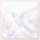 Lavender Hummingbird surrounded by flowers Glass Coaster