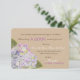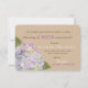 Rustic baby shower read a book card design with lavender hydrangea over linen-looking background.