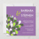 Cute, contemporary lovebirds, sweet and simple semi-formal wedding invitations. Abstract floral graphic makes an unusual and unique statement in bold orchid and accent colours radiant emerald, lime, winter-green and white. Perfect for the stylish and sophisticated bride and groom who want to set a casual but classy tone for their special day. This modern wedding invitation set can be customised for all kinds of invites such as save the date, bridal shower, engagement party, marriage announcements, gay weddings, civil unions, multicultural fusion weddings, anniversary, birthday, retirement, corporate and business events, charity fundraisers. All sample text can be easily customised in this template, or click Customise It to change the style, layout, size and colours of the fonts. Available in seasonal colours for spring, summer, autumn, fall, or winter. Trendy but affordable elegance at bargain discount prices for frugal brides on a budget. Shown with bold black background on luxury Linen card stock -- easily changed to inexpensive Basic, or upgrade to premium quality Felt, Recycled, or Metallic paper options. CARD SIZE: 5.5 x 5.5 inches -- other sizes, colours, and paper styles and wedding kit essentials available upon request. Please contact us for assistance if you need help to match your wedding theme, or to create your own do-it-yourself one-of-a-kind invitations.