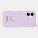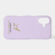 Elegant stylish chic personalized customized iPhone case monogrammed with initial letter and full name. Trendy calligraphy handwritten script for the golden initial, classy editorial style serif gold and black font for the name typography. All text ist customizable. Fashionable aesthetic premium look accessory to protect your cellphone, feminine, trendy lavender pastel purple monochrome monochromatic background complements very well the simple minimalist minimal typography design. A great thoughtful and useful tech accessory gift idea for her, suitable for many occasions and celebrations, like birthday, Mother’s Day, Christmas, graduation even retirement present, etc. So affordable, a custom electronic gift under 30 dollars for her. Appropriate for personal phone use or as professional business phone protection case.