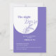 Set the tone for a magical evening with our "Lavender Night Before Invitation." Featuring a captivating arch adorned with a delicate lavender flower and rich purple hues, this invitation exudes elegance and romance. Below the enchanting arch, the details of the event are elegantly displayed, accompanied by the names of the bride and groom, adding a personalised touch to this special occasion. Invite your guests to join you for an unforgettable night filled with love and anticipation.