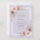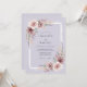 This design features a soft lavender background adorned with delicate watercolor florals in shades of mauve and dusty rose. Lush roses and ethereal sprigs are complemented by sage green eucalyptus foliage, creating a dreamy and serene atmosphere. The painterly botanical elements evoke a sense of elegant artistry perfect for a springtime or bohemian event.