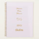 A soft lavender pink coloured background decorated with an infinity loop. The motivational quote: Drem. Plan. Bloom. Personalise and add your name and year.