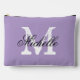 Lavender purple accessory pouch with monogram. Classy typography design template. Personalize with custom name initial. Bathroom and travel gifts.