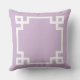 Stylish and modern square accent pillow design features a Greek key geometric border frame design and monogram that can be personalised. Lavender violet / purple and white colours. Background colour can be modified.