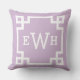 Lavender Purple Custom Greek Key Monogram Initials Cushion