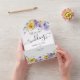 Lavender Purple Golden Yellow Floral Wedding RSVP All in One Invitation. Beautiful floral wedding invitation featuring hand painted watercolor flowers in lavender and lilac purple and bright yellow golden with greenery and modern calligraphy script. Elegant floral all in one wedding invitation perfect for spring, summer or fall weddings.