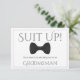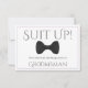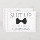 Use this "groomsman proposal card" to ask your special friends and family members to be a groomsman at your wedding. Designed to coordinate with our Purple & Grey Elegant Wedding Suite, it features an image of a black bow tie and says: Suit Up! Your Services are Requested as Groomsman" There is a space to enter a special note asking "will you be my groomsman?" as well as the wedding couple's names and wedding date. All fields are fully customisable.