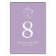 This elegant wedding table number card features a monogram encircled by lavender line art with the bride and groom's initials, names and wedding date in white over a purple background. Use the template fields to add your custom details. Click on "Edit using design tool" to change the colours and fonts. To see more wedding table decoration ideas like this visit www.zazzle.com/dotellabelle