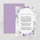 a beautiful wreath of lavender and purple blooms surrounds your enclosure details. Easy to personalise with your own information.