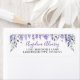 This elegant return address label features delicate lavender wisteria flowers draped along the top. Your name appears in a soft purple handwritten script, while the address is printed in a classic black serif font on the right. The simple floral design creates a graceful and timeless look, perfect for Quinceañera invitations, birthday parties, wedding stationery, or special thank you notes.