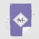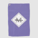 Show your style while golfing with this Lavender Purple Script Personalised Monogram Golf Towel. It is a modern design with a customisable purple background and white diamond shape on the centre with your initial in grey. Your name is in elegant black script lettering. You can change the colours from lavender purple as shown if you prefer a different colour. This makes a great personalised golf gift idea for her!