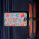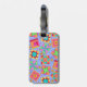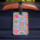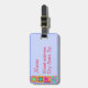 This luggage tag or sewing machine tag will show your love of quilting while identifying your possessions while you travel. Original quilt art combines favourite quilt blocks in vibrant and dynamic colours on a lavenderl background. One side of the luggage tag is customisable to show your name and address. A quilt block design is on the reverse side. This makes a great gift for a quilter or quilt lover. Fully customisable.